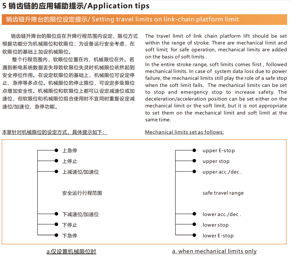 > 乐竞(中国)刚性链升降台的限位设定提示