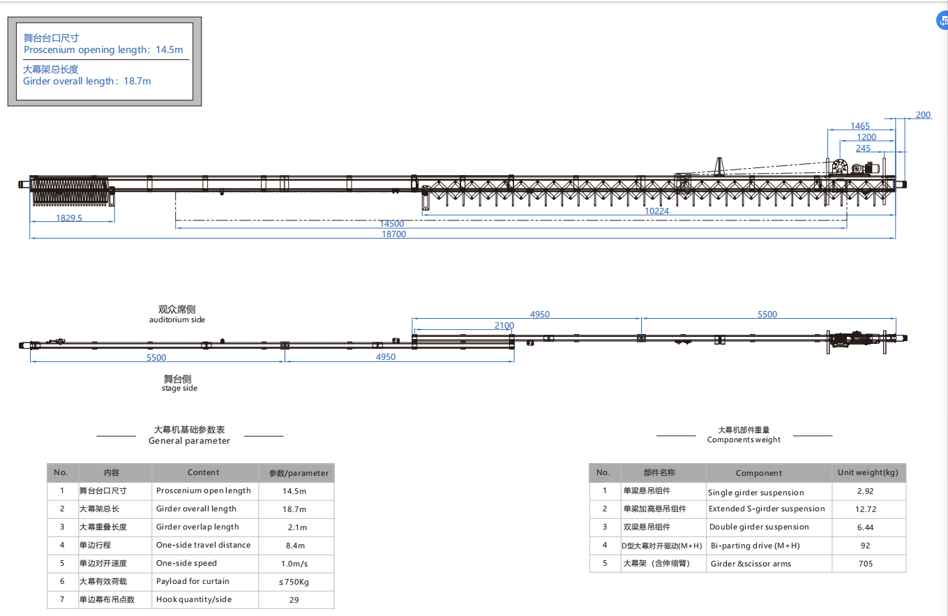 大幕机选型图 14.5m/18.7m